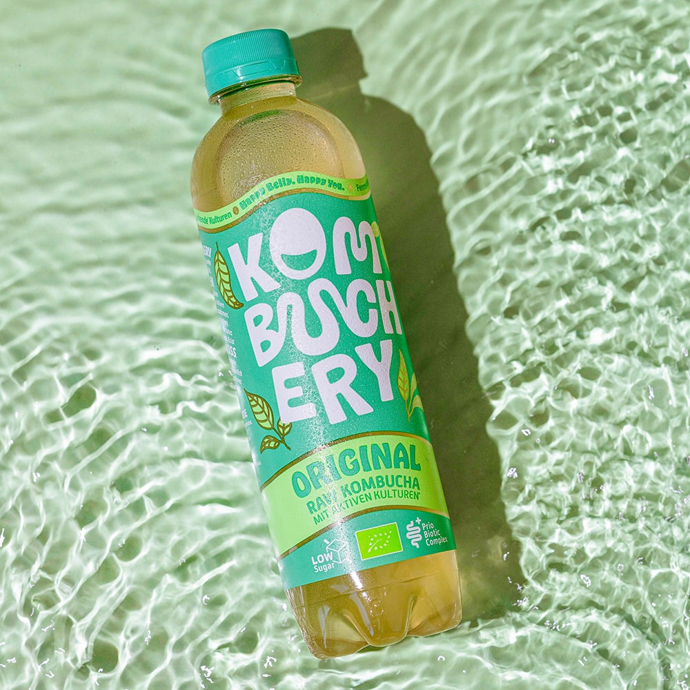 Natürlich können wir dir nicht das genaue Geheimrezept verraten, aber wir möchten transparent erklären, was dahinter steckt: Wir setzen auf einen mehrstufigen Fermentationsprozess, bei dem wir genau auf die natürlichen Abläufe achten. Der Zucker wird dabei nahezu vollständig verstoffwechselt und möglicher Alkohol bereits im Prozess wieder abgebaut. Mit unter 2,3 g Zucker pro 100 ml enthält unser Kombucha über 60 % weniger Zucker als die meisten anderen – das macht ihn nicht nur leichter und gesünder, sondern nimmt den Mikroorganismen auch die Nährstoff-Grundlage für eine ungewollte Weitergärung.