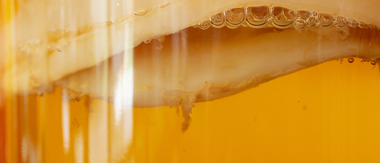 Die Herstellung unseres Kombuchas folgt einem traditionellen Fermentationsprozess, den wir über Jahre hinweg perfektioniert haben. Durch langsame und sorgfältige Fermentation können sich die Aromen voll entfalten. Natürliche Hefen und Bakterien wandeln dabei Zucker in gesunde Enzyme und organische Säuren um. Dank unseres komplexen Prozesses bleiben wertvolle Kulturen und Nährstoffe in jeder Flasche erhalten. Auf Pasteurisierung verzichten wir bewusst – nur so bleibt die volle Wirkung und Frische erhalten. Das Ergebnis: ein nachhaltig hergestellter Kombucha mit einzigartigem Geschmack und natürlicher Lebendigkeit.