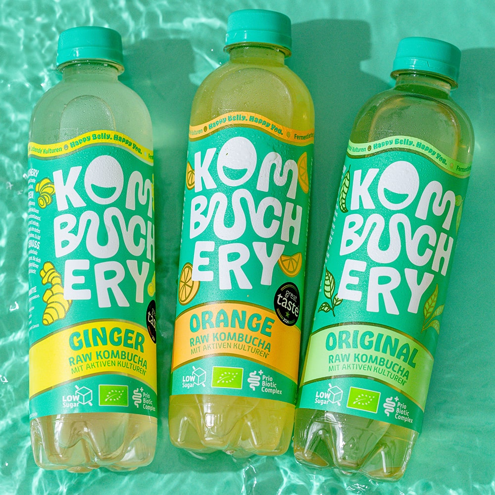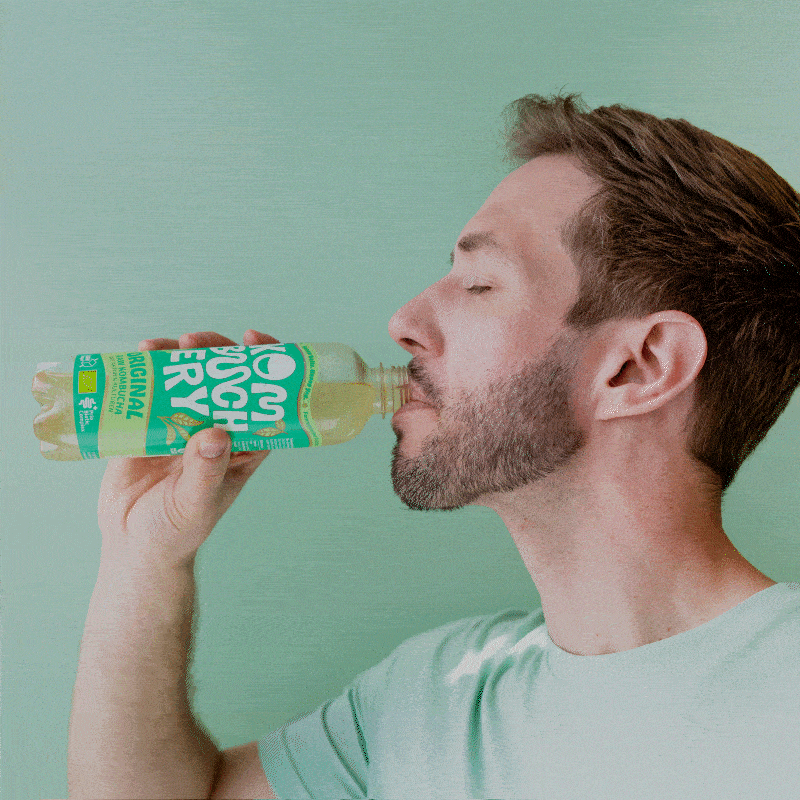 Natürlich können wir dir nicht das genaue Geheimrezept verraten, aber wir möchten transparent erklären, was dahinter steckt: Wir setzen auf einen mehrstufigen Fermentationsprozess, bei dem wir genau auf die natürlichen Abläufe achten. Der Zucker wird dabei nahezu vollständig verstoffwechselt und möglicher Alkohol bereits im Prozess wieder abgebaut. Mit unter 2,3 g Zucker pro 100 ml enthält unser Kombucha über 60 % weniger Zucker als die meisten anderen – das macht ihn nicht nur leichter und gesünder, sondern nimmt den Mikroorganismen auch die Nährstoff-Grundlage für eine ungewollte Weitergärung.